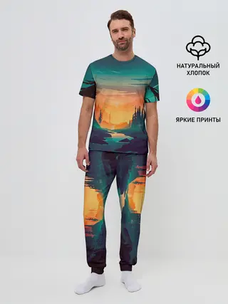 Мужская пижама с брюками / Закат Лес