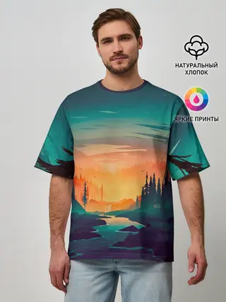 Мужская футболка оверсайз / Закат Лес