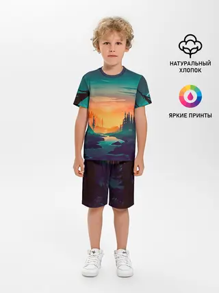 Детская пижама с шортами / Закат Лес