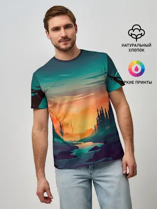 Мужская базовая футболка / Закат Лес