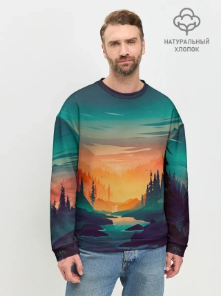 Мужской свитшот базовый / Закат Лес