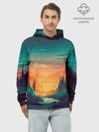 Худи мужской база хлопок / Закат Лес