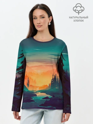 Лонгслив женский. Хлопок / Закат Лес