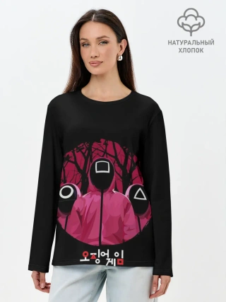 Лонгслив женский. Хлопок / Игра в кальмара Маски