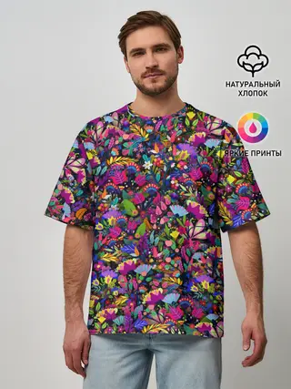 Мужская футболка оверсайз / Мистические цветы