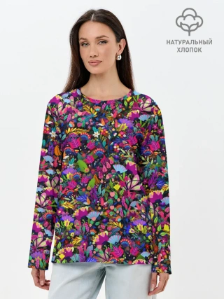Лонгслив женский. Хлопок / Мистические цветы