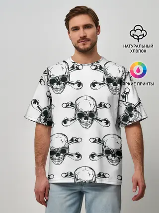 Мужская футболка оверсайз / Череп и кости