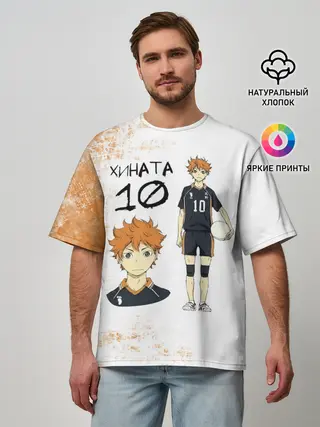 Мужская футболка оверсайз / ХИНАТА 10 номер ВОЛЕЙБОЛ!!