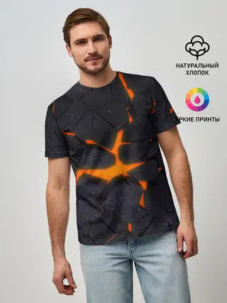 Мужская базовая футболка / ТРЕЩИНЫ ЗЕМЛИ | 3D CRACKS | НЕОН