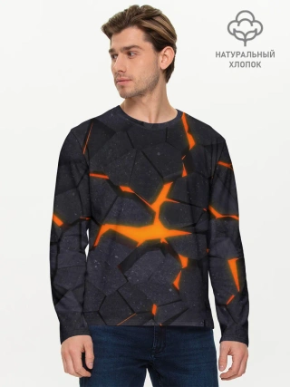 Мужской лонгслив базовый / ТРЕЩИНЫ ЗЕМЛИ | 3D CRACKS | НЕОН