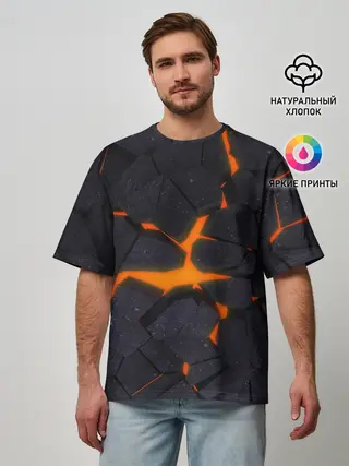 Мужская футболка оверсайз / ТРЕЩИНЫ ЗЕМЛИ | 3D CRACKS | НЕОН