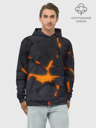Худи мужской база хлопок / ТРЕЩИНЫ ЗЕМЛИ | 3D CRACKS | НЕОН
