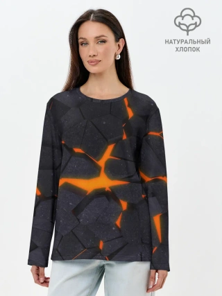 Лонгслив женский. Хлопок / ТРЕЩИНЫ ЗЕМЛИ | 3D CRACKS | НЕОН
