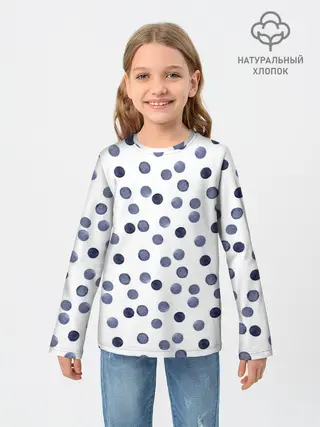 Детский лонгслив / Акварельный синий горох