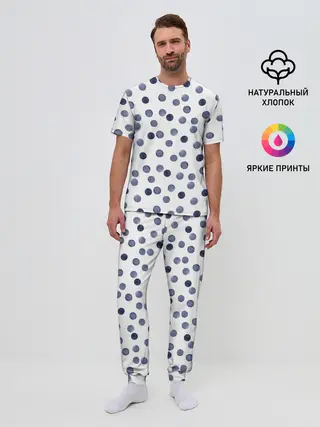 Мужская пижама с брюками / Акварельный синий горох
