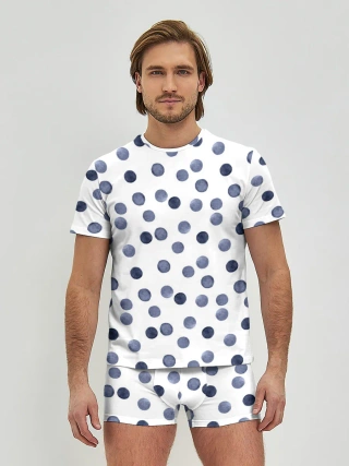 Мужские трусы с футболкой / Акварельный синий горох