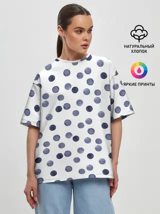 Женская футболка оверсайз / Акварельный синий горох