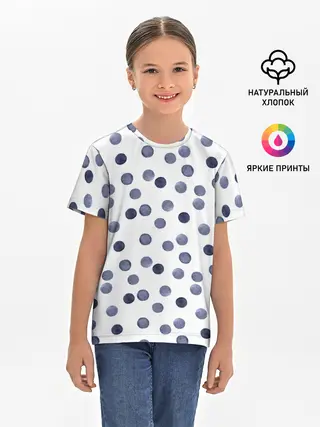 Детская базовая футболка / Акварельный синий горох