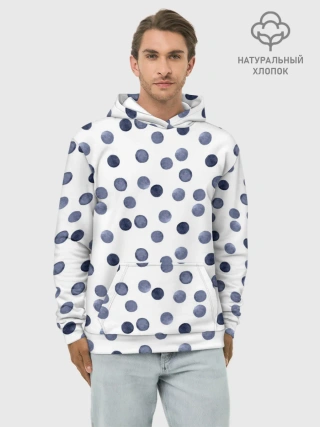 Худи мужской база хлопок / Акварельный синий горох