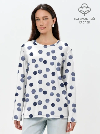 Лонгслив женский. Хлопок / Акварельный синий горох
