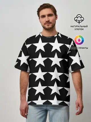 Мужская футболка оверсайз / Белые звёзды на чёрном фоне
