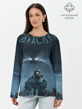 Лонгслив женский. Хлопок / Halo calligraphy