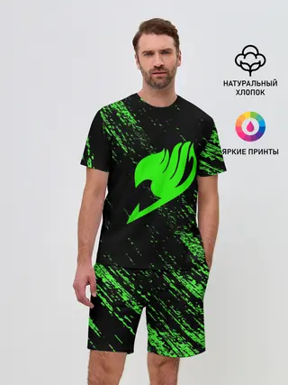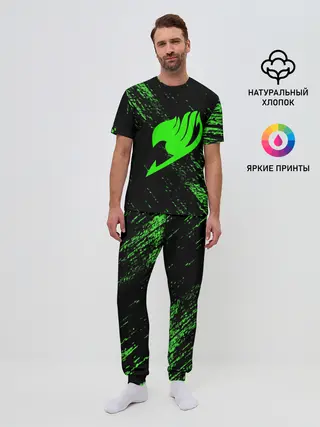 Мужская пижама с брюками / Хвост Феи зеленая диагональ