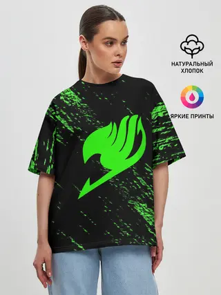 Женская футболка оверсайз / Хвост Феи зеленая диагональ