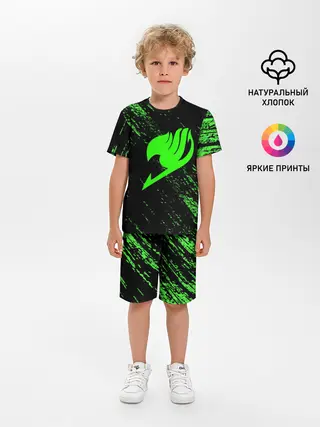 Детская пижама с шортами / Хвост Феи зеленая диагональ