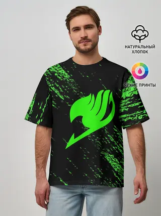 Мужская футболка оверсайз / Хвост Феи зеленая диагональ