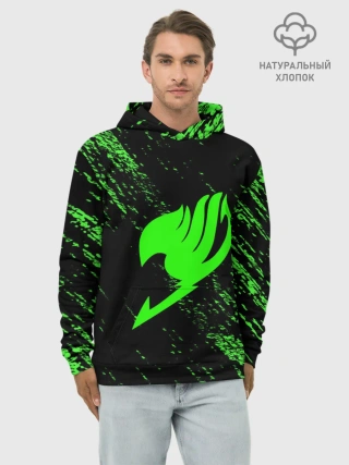 Худи мужской база хлопок / Хвост Феи зеленая диагональ