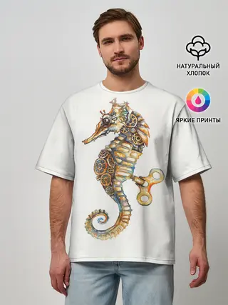 Мужская футболка оверсайз / Морской конёк