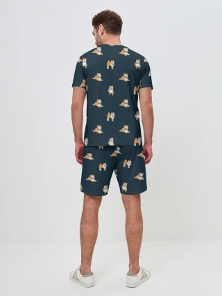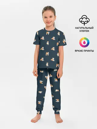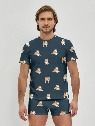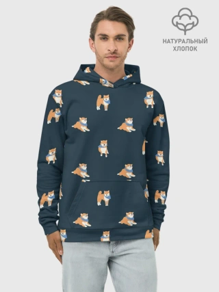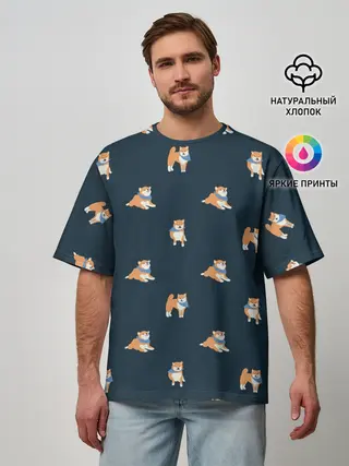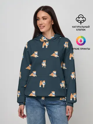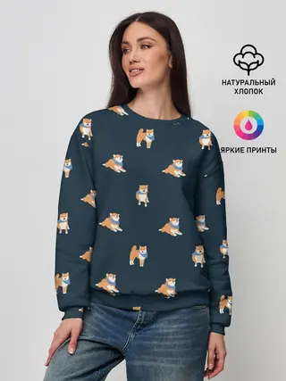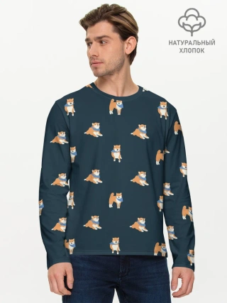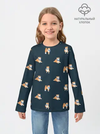 Лонгслив женский. Хлопок / Шиба ину паттерн