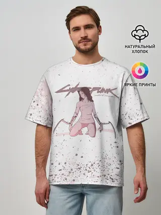 Мужская футболка оверсайз / КЛИНКИ БОГОМОЛА | CYBERPUNK 2077
