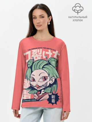 Лонгслив женский. Хлопок / Anime Kuchisake Onna Yokai