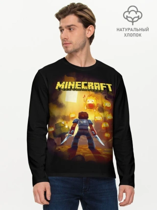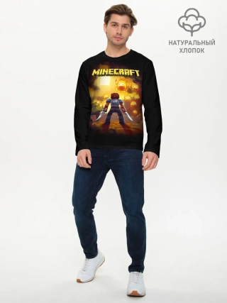 Мужской лонгслив базовый / Стив против огненных Гаст | Minecraft