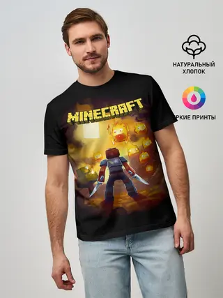 Мужская базовая футболка / Стив против огненных Гаст | Minecraft