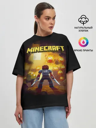 Женская футболка оверсайз / Стив против огненных Гаст | Minecraft