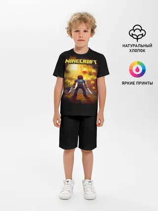 Детская пижама с шортами / Стив против огненных Гаст | Minecraft