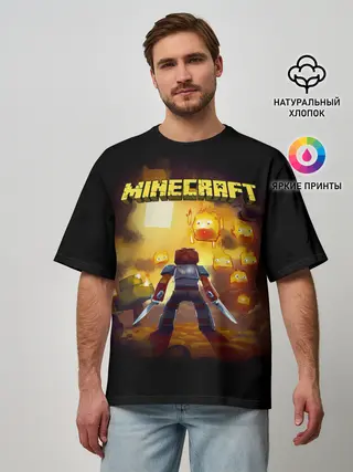 Мужская футболка оверсайз / Стив против огненных Гаст | Minecraft