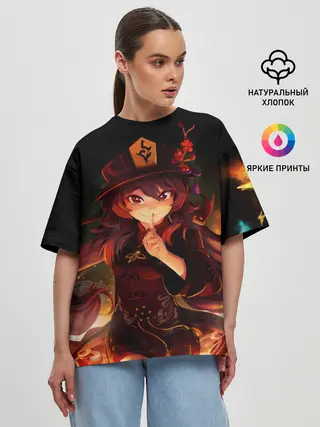 Женская футболка оверсайз / Genshin Impact, Hu Tao