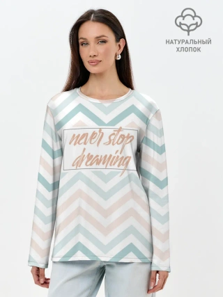 Лонгслив женский. Хлопок / Никогда не переставай мечтать