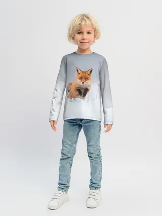 Мужской лонгслив базовый / Лисица прыгает по снегу
