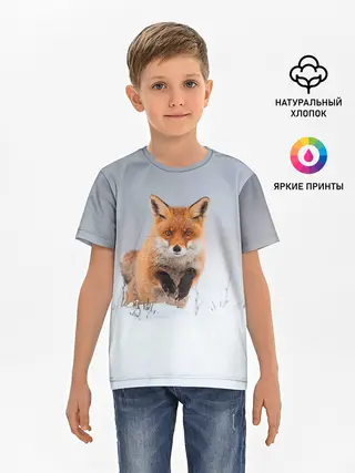 Женская футболка оверсайз / Лисица прыгает по снегу