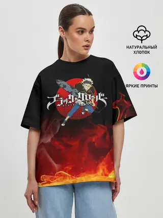 Женская футболка оверсайз / Аста в огне Чёрный клевер
