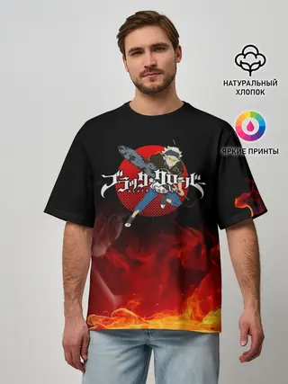 Мужская футболка оверсайз / Аста в огне Чёрный клевер