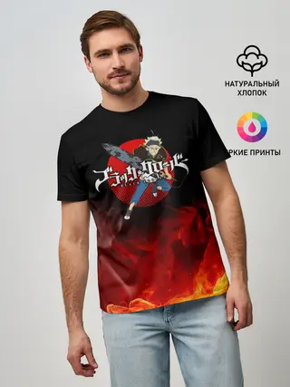 Мужская базовая футболка / Аста в огне Чёрный клевер