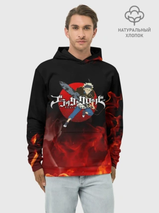 Худи мужской база хлопок / Аста в огне Чёрный клевер