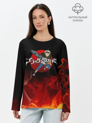 Лонгслив женский. Хлопок / Аста в огне Чёрный клевер