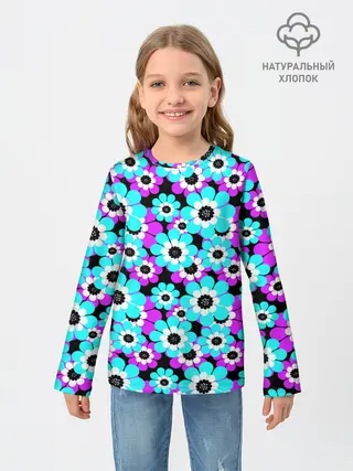 Детский лонгслив / Яркие бирюзовые цветы